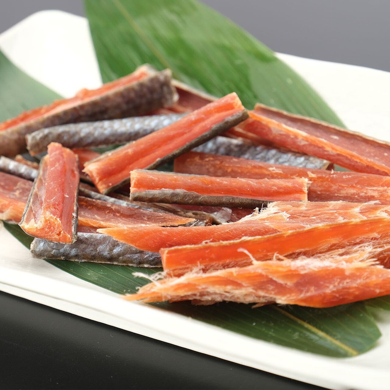 味付けは塩のみなので、飾らない自然の味わいとなっております。ひとかけらを口に入れて噛むたびに、素朴ながらにぎゅっと濃縮された北海道の天然鮭の旨味を心ゆくまで堪能できます。お召し上がりの際は、お好きな大きさに手で折ったり、ハサミでカットしてください。皮は手で簡単にはがすことができます。軽く炙ると風味が増しより一層美味しくお召し上がりいただけます。お酒のつまみはもちろんのこと、水で戻して炊き込みご飯にするととても出汁がでて大変美味しいです。