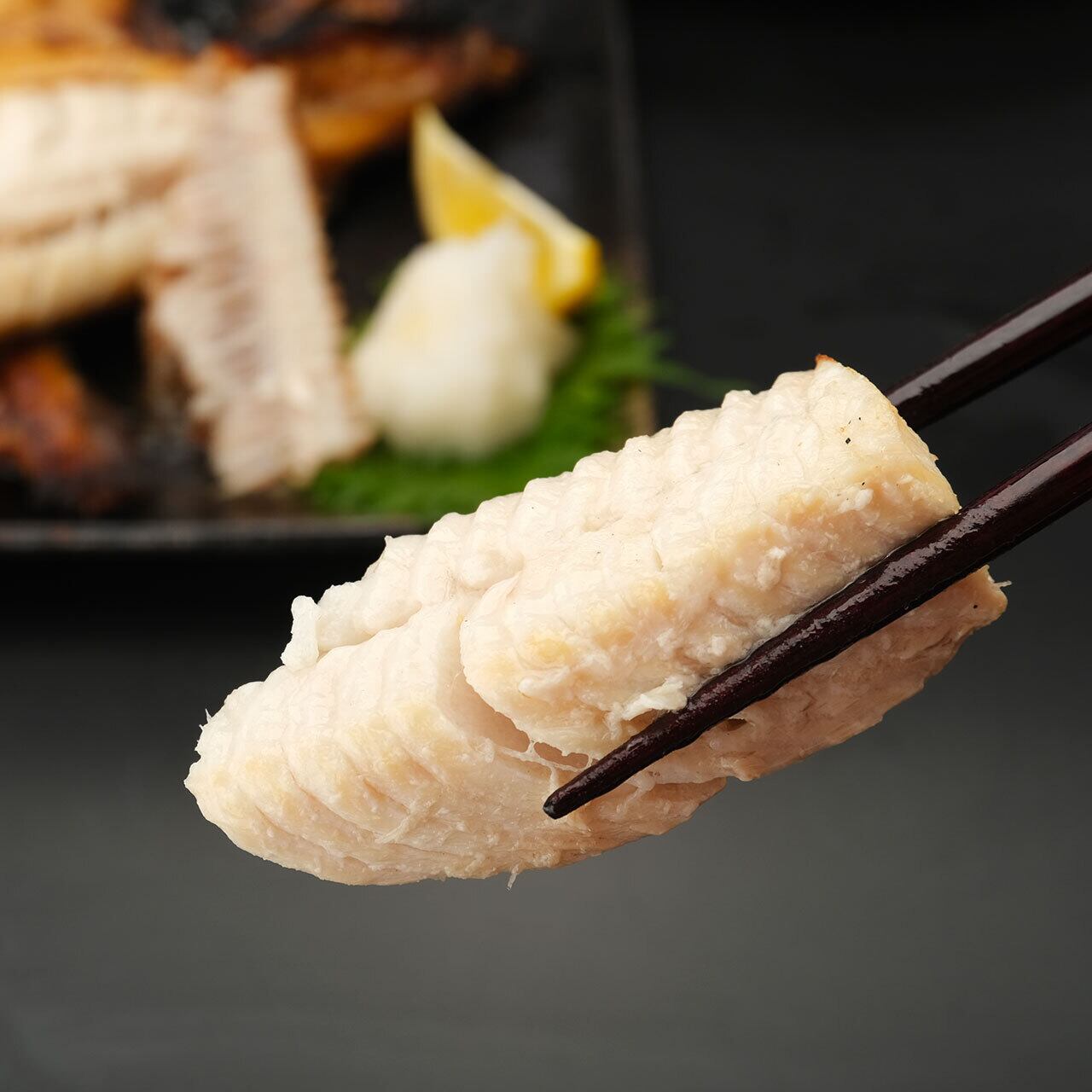 ホッケの厚みをご覧ください!皆さんがこれまでに食べたことのあるホッケとは、見た目の厚みの違いがお分かりになると思います。箸でつかんだホッケの身を口に運んでください。身はホクホクとふっくらしており、ホッケ特有の旨みと脂が口の中にじゅわ〜っと広がります。身が肉厚なので、まるでお肉を食べているかのような食べ応えもあるんです。
